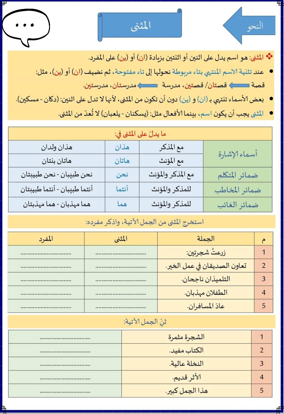 سارفق رابط حول موضوع المثنى يرجى قراءة المادة وحل التمارين